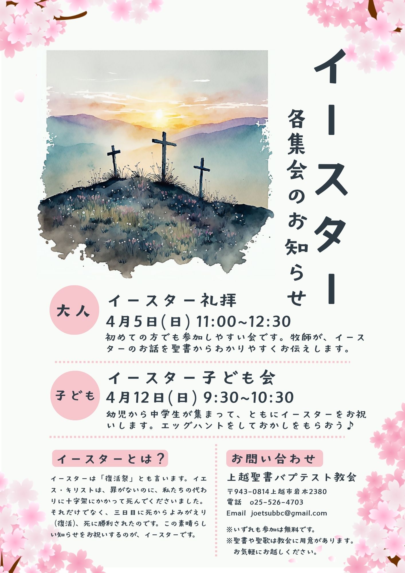 私たち「上越聖書バプテスト教会」は、2004年の春、新潟県上越市に設立された教会です。